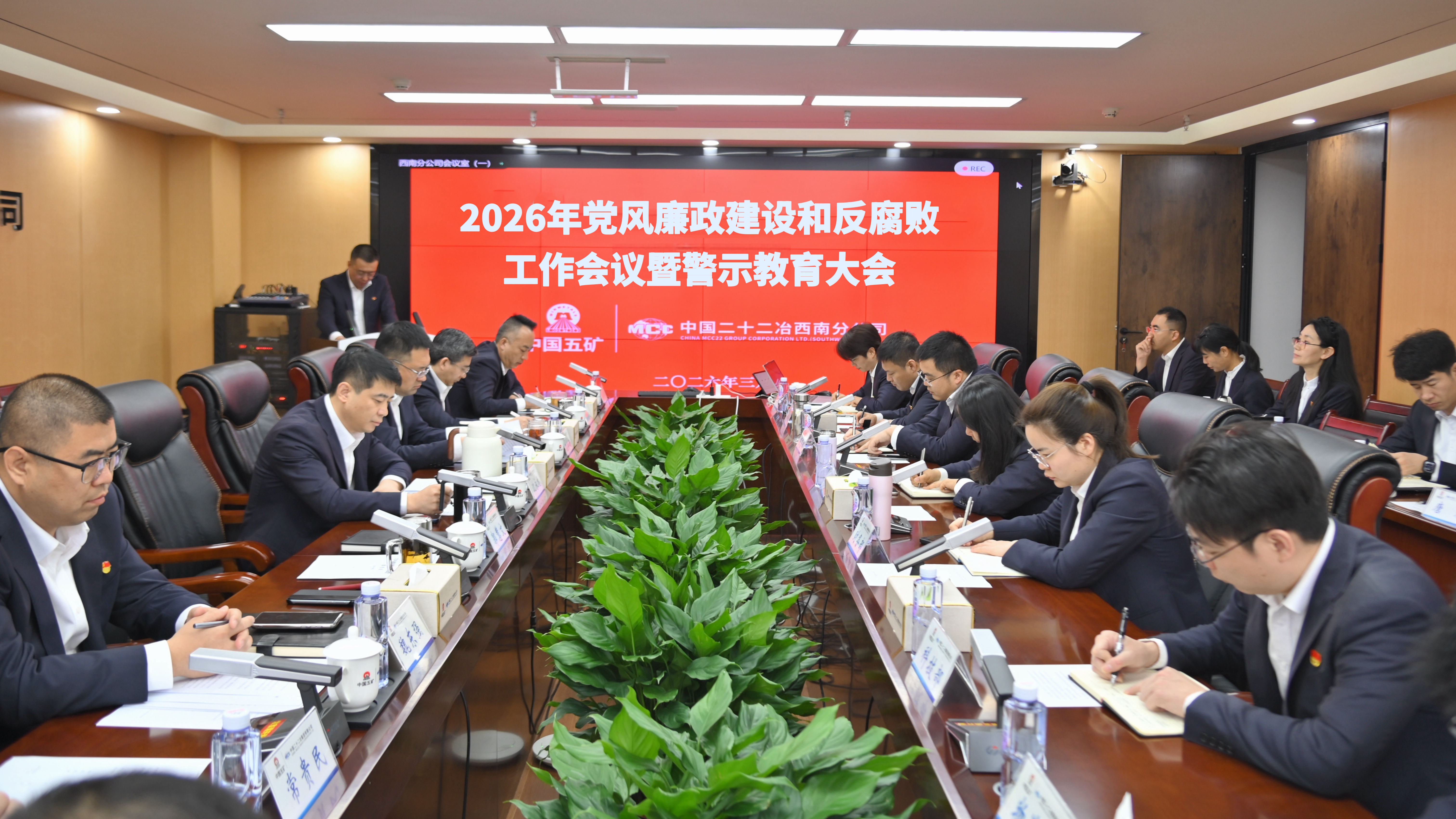 為深入學習貫徹中央紀委歷次全會精神,全面落實中國五礦、中國中冶及中國二十二冶黨風廉政建設和反腐敗工作會議部署要求,3月8日,公司召開2026年度黨風廉政建設和反腐敗工作會議暨警示教育大會。公司總經理、黨總支書記沈永龍出席會議并講話,黨總支副書記、工會主席郭慧文主持會議