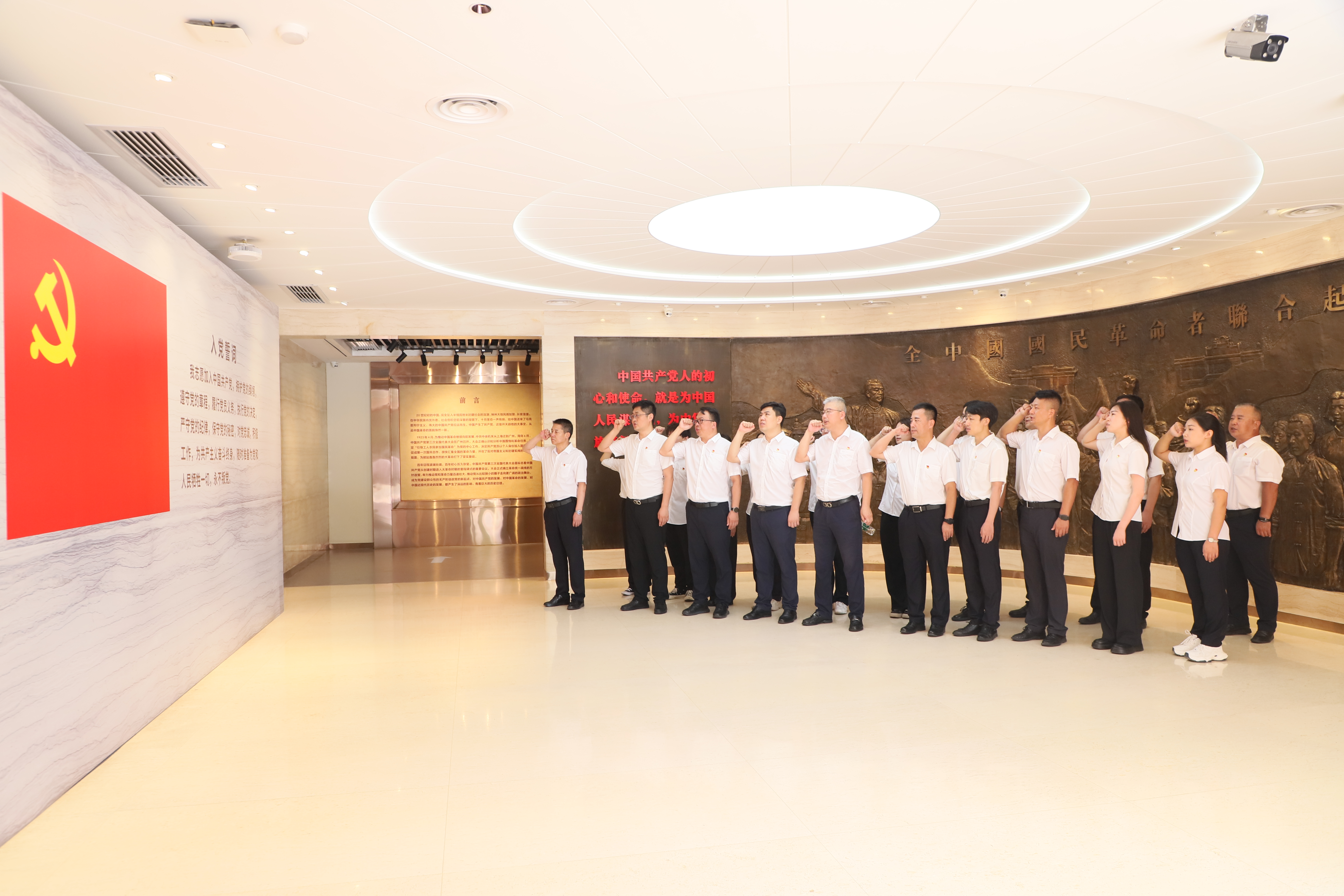 活動中,黨委書記、紀委書記、代理工會主席、副總經理李冰河帶領全體黨員干部重溫入黨誓詞,激勵黨員干部牢記黨的宗旨,堅定理想信念,履行黨員義務,永葆共產黨人先進本色。參觀過程中,大家一邊聆聽講解,一邊仔細觀看,通過珍貴的文物實物、詳實的檔案資料、生動的圖片視頻,重溫黨的崢嶸歲月,從一個個黨史故事和歷史細節中了解中共三大召開的歷史背景、重大歷史意義和深遠影響,感受革命先烈的責任與擔當。