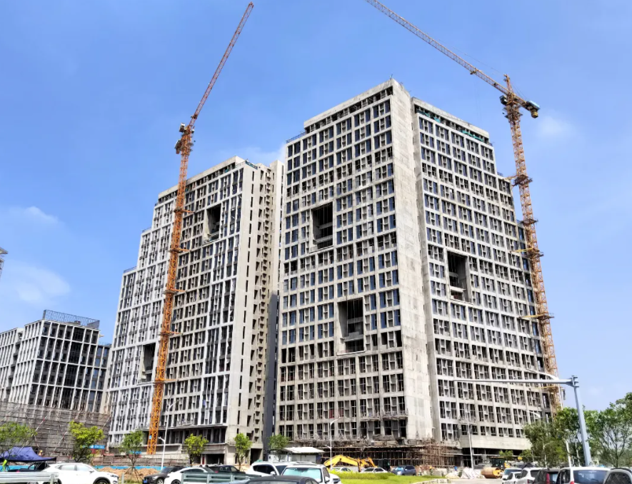 國際創新驅動中心3號地塊項目位于廣東省廣州市黃埔區知識大道與永九快速路交匯處,總占地面積30667.22平方米,建筑面積總計155657.76平方米,包含G1-G5共5棟辦公樓和地下室車庫,首層均為5米層高,其他樓層層高為4.5米。本次建設范圍為G3-G5三棟,G3棟高92.2米,地上21層,G4棟高92.2米,地上20層,G5棟高86.2米,地上19層。項目具有臨設場地狹窄、工程體量大、室內凈空要求高、地下室管線數量多且協調難度大等特點。