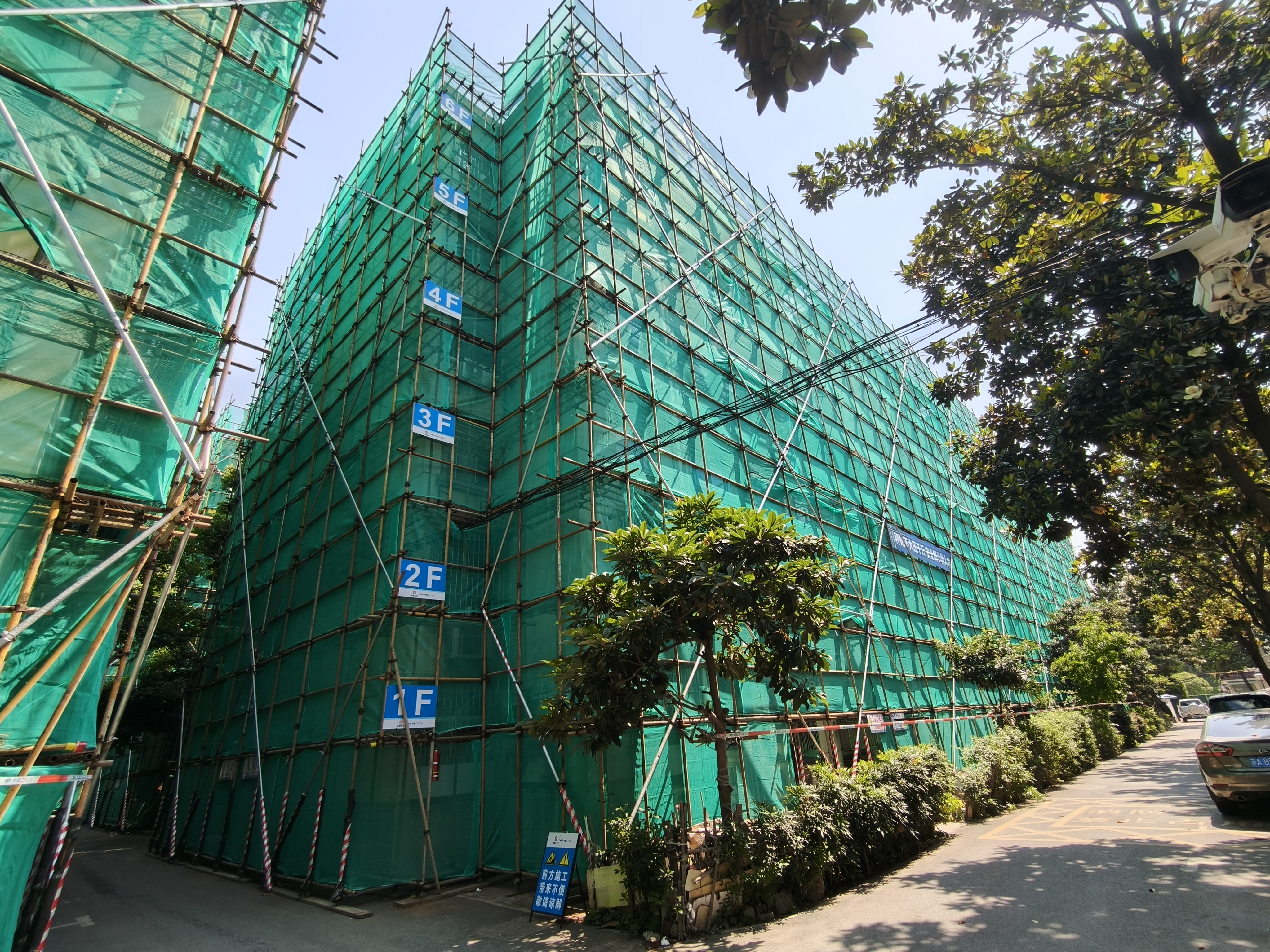 玄武老舊小區改造項目自啟動以來,全體參建人員以"敢打硬仗、能打勝仗"的鐵軍作風全速推進工程建設。面對工期緊、協調任務重、老舊小區施工難度大等挑戰,項目團隊推行 “嚴抓施工進度、嚴管質量安全、嚴守協調機制” 三 “嚴” 管理模式,保障工程有序推進。將任務細化至每日工序,實行 24 小時輪班作業與掛圖作戰,克服多次協調工作的困難。截至目前,58棟樓腳手架搭設完成。
