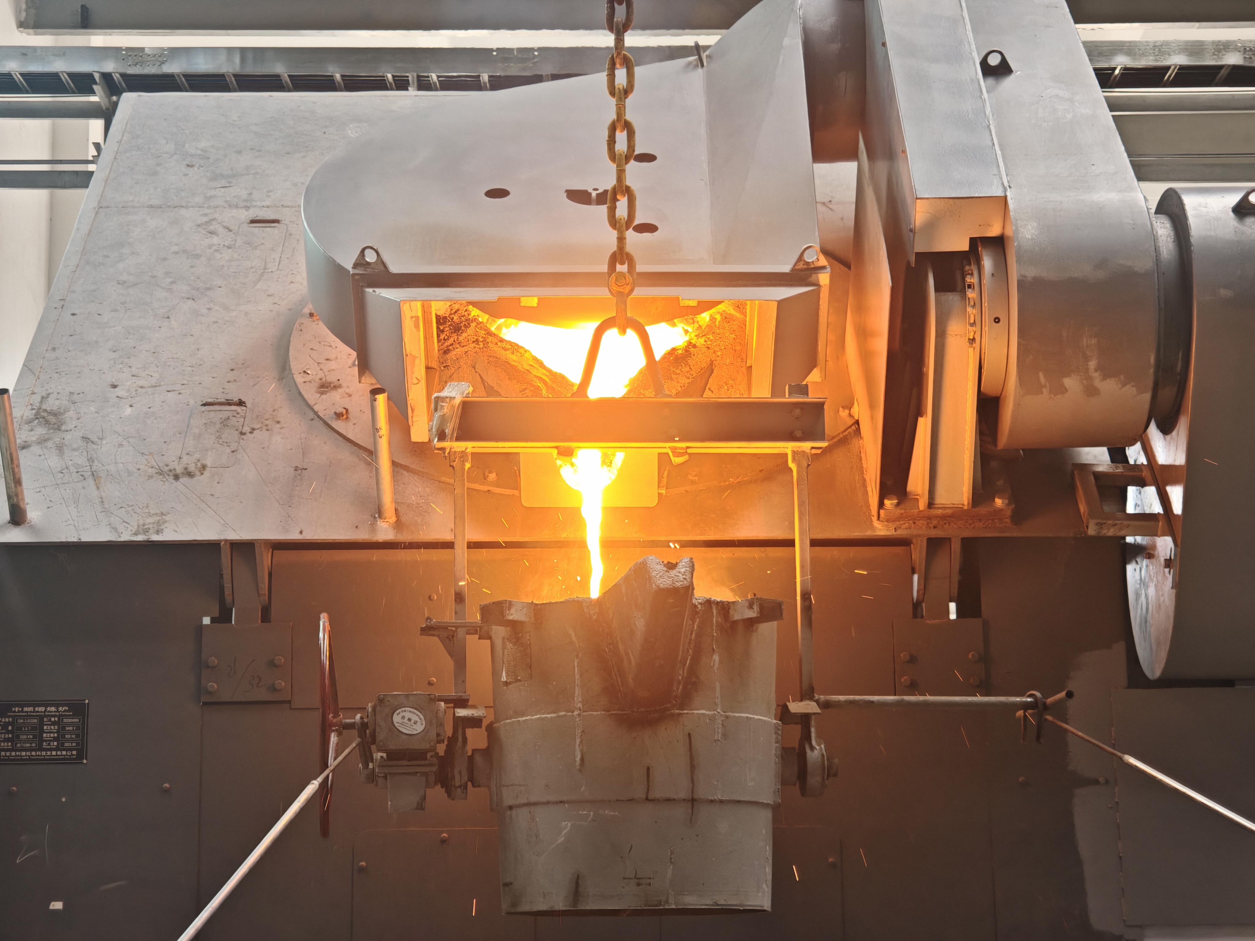 為確保中頻爐順利熱試,項目技術人員提前與設備廠家溝通,反復核對設備參數,編制詳細的安裝調試方案。廠家到達現場后,項目部聯合業主與廠家,成立現場調試小組,發現問題及時解決。熱試前,為保證供電穩定,項目團隊調整各車間施工任務,確保滿足中頻爐的供電需求。此次中頻爐成功熔煉出的第一爐鐵水,不僅驗證了設備安裝調試的可靠性,更積累了海外電解鋁項目陽極組裝車間設備運行的寶貴經驗。