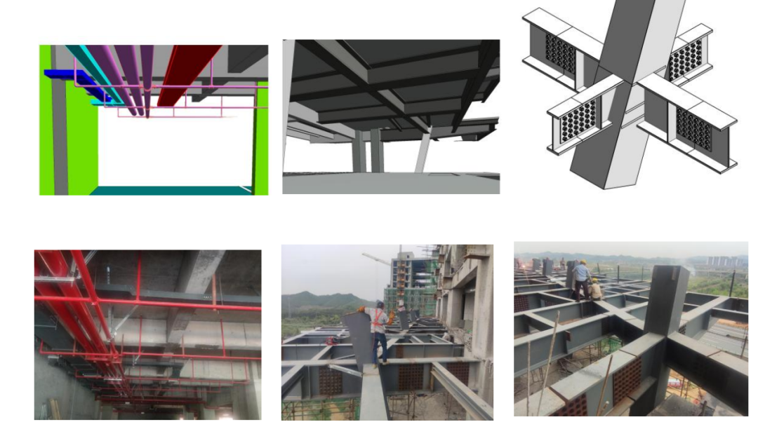 景德鎮藝術職業大學是我國首個藝術類職業大學,其中學校工學綜合組團中的雙創大樓為混凝土框架結構和懸挑鋼結構組合結構,是本項目的重難點單體工程。雙創大樓具有建筑造型比較新穎,各專業交叉多、施工工期緊張,鋼結構施工難度大,機電管線多且復雜,設備房數量多等特點,故項目采用BIM作為解決以上重難點的技術措施。BIM技術貫穿設計施工全過程,對項目設計-施工協同、商務成本管控、工期進度管控、施工質量管控起到重要作用。