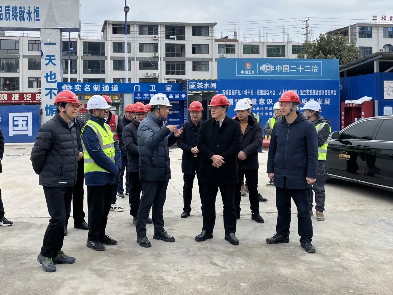 2024年1月24日,贛州市政協副主席劉春文深入石城縣安置房建設項目調研棚改具體工作舉措,贛州市住房和城鄉建設局黨組成員肖繼來、應急管理局四級調研員張江騁陪同調研。