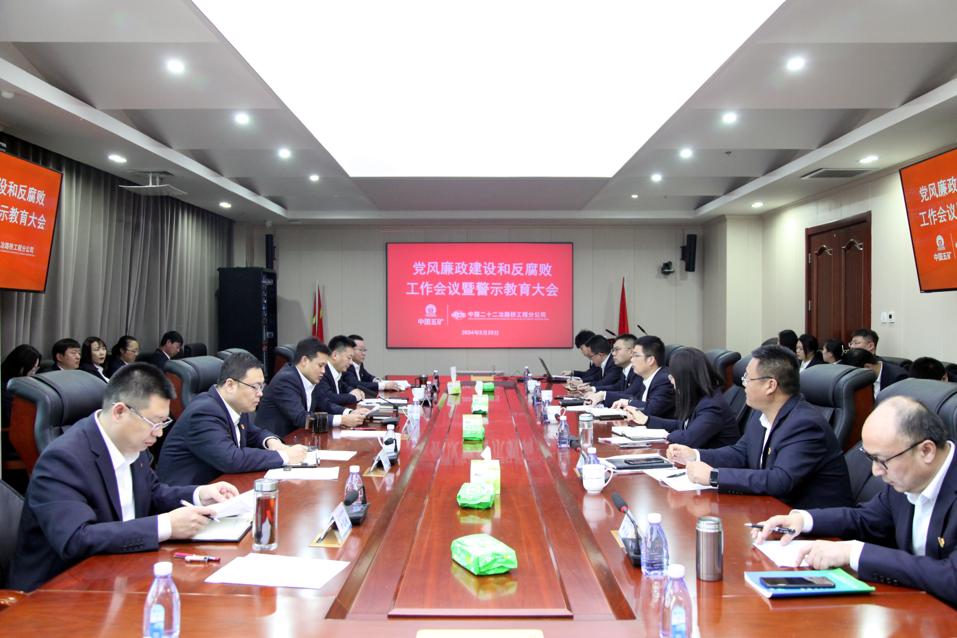 2月25日,路橋公司召開2024年黨風廉政建設和反腐敗工作會議。會議傳達了二十屆中央紀委三次全會及中國五礦、中冶集團、中國二十二冶集團2024年度黨風廉政建設和反腐敗工作會議精神,回顧總結2023年路橋公司黨風廉政建設和反腐敗工作,圍繞路橋公司2024年黨政工作會議精神和既定目標、任務、安排部署了今年黨風廉政建設和反腐敗工作主要任務。
