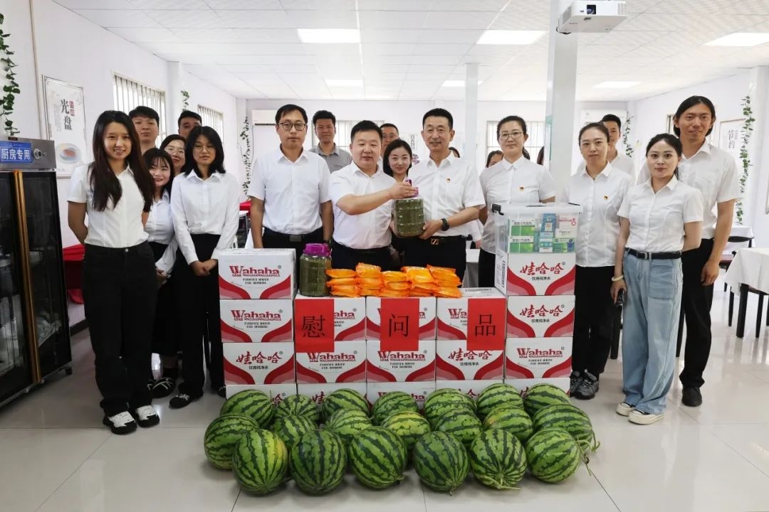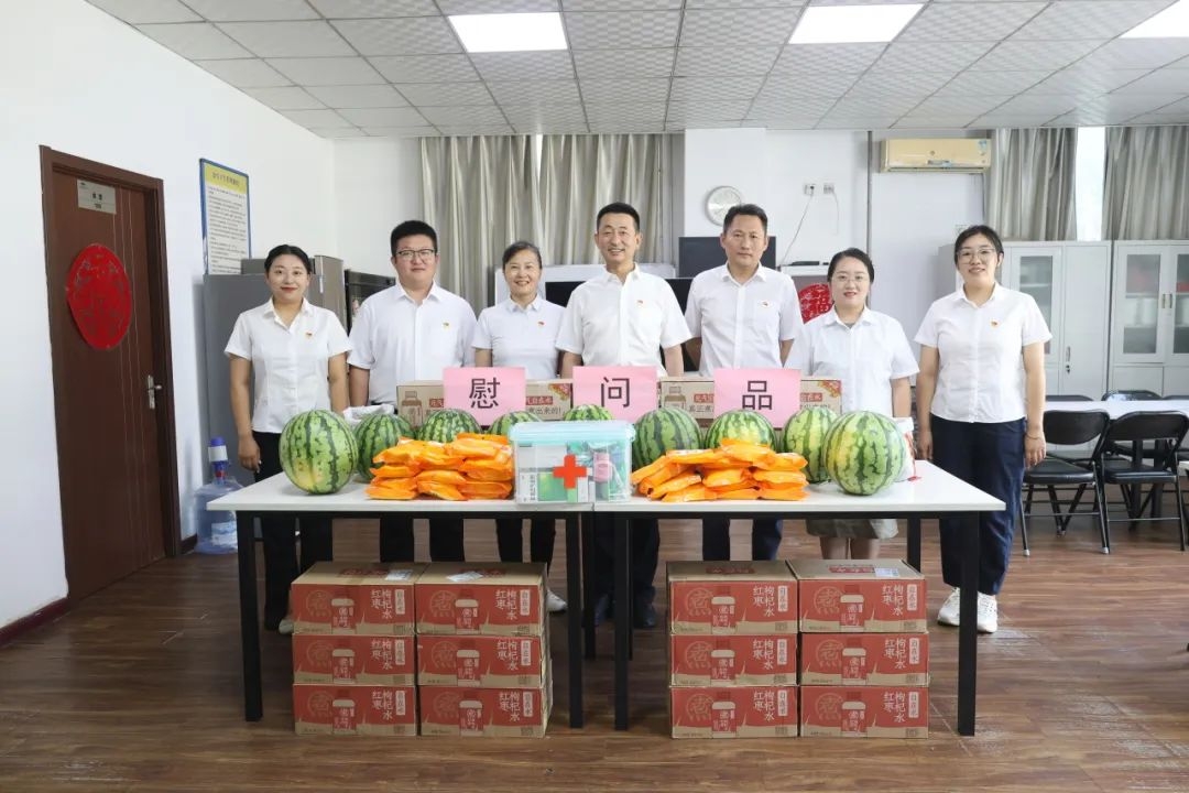 在浭陽新城項目,張學鋒把西瓜、綠豆、白糖、解暑飲料、藥品等防暑降溫用品送到員工手中,感謝他們作出的貢獻,并叮囑大家在高溫天氣下要做好防暑降溫,確保自身健康與安全。一份份貼心的防暑物品,一句句溫暖的話語,讓員工們“涼”在身上、暖在“心”上。
