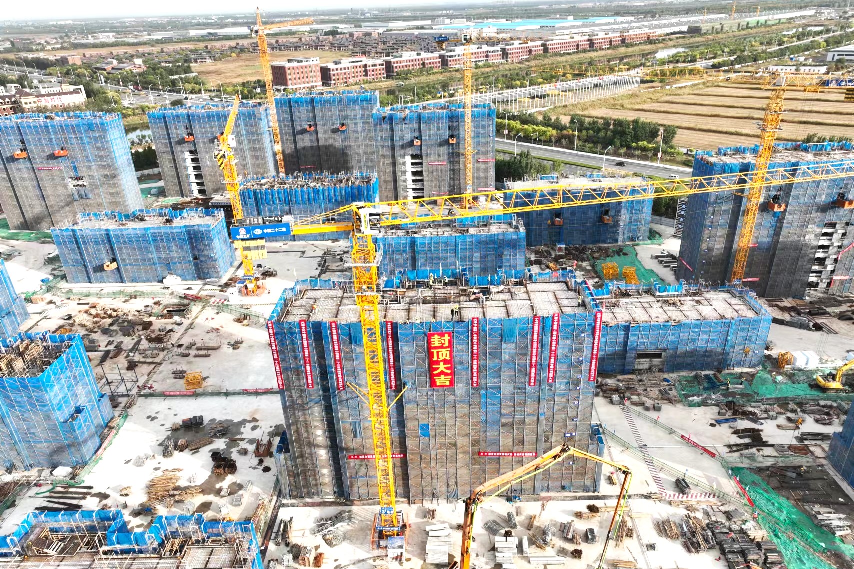 未來科技城2019-05地塊保障性租賃住房項目位于天津市寧河區內,由9棟9層和8棟15層高層住宅、3棟配建及一棟地下車庫組成。總建筑面積100131平方米,其中地上建筑面積81870.60平方米、地下建筑面積18260.40平方米,9層高層住宅地上主體結構高度26.25米、15層高層住宅地上主體結構高度43.65米,高層住宅結構體系為鋼筋混凝土剪力墻結構、商業配建及地下車庫為框架結構。項目首棟樓主體結構封頂具有里程碑式的現實意義,為后期工程快速推進奠定了堅實基礎。