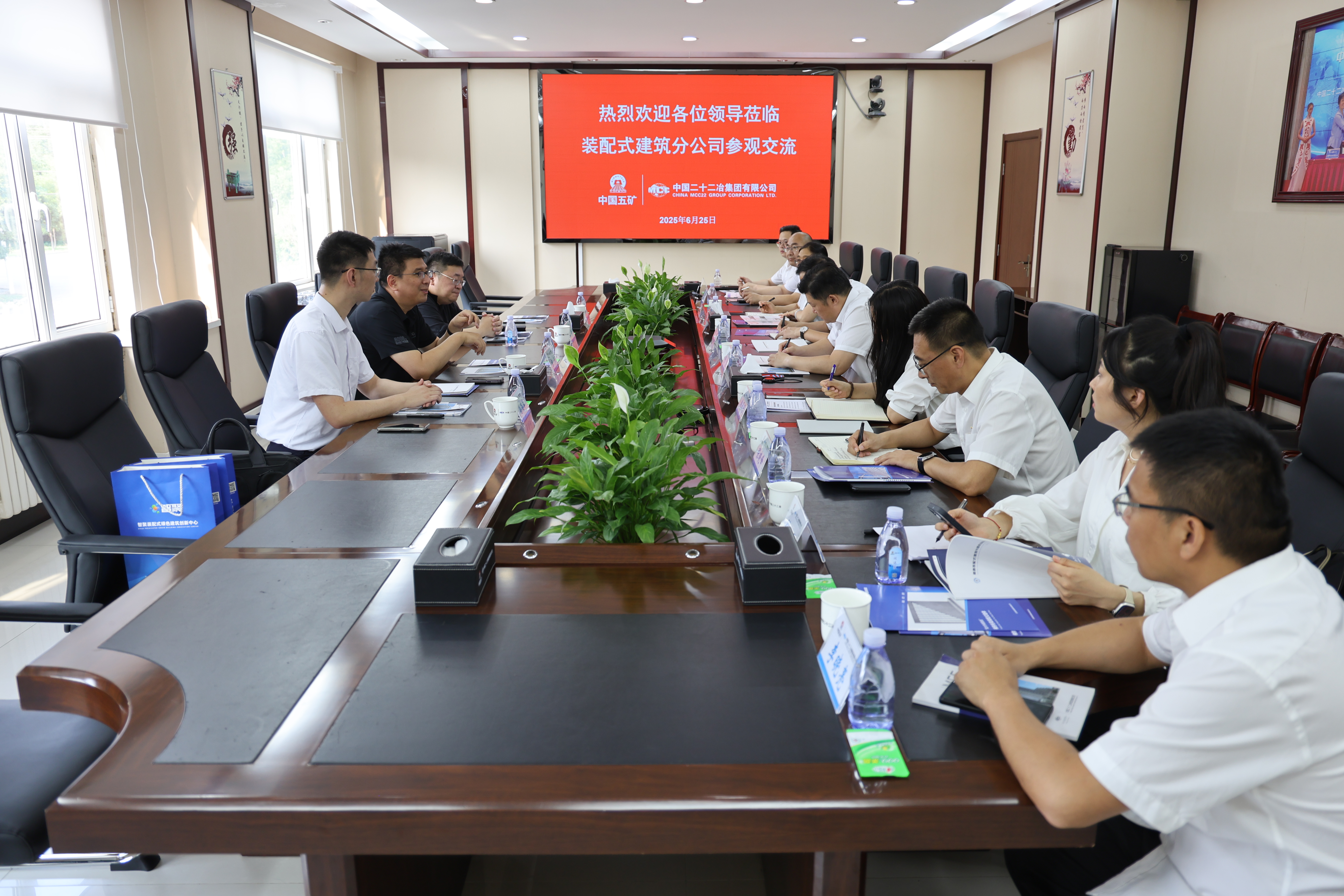 張蓋對宮海院長一行的到來表示熱烈歡迎,并談到中國二十二冶作為中國五礦及中國中冶旗下核心骨干子企業,在大型工程總承包、施工建造領域擁有深厚積淀與卓越實力。其在裝配式建筑領域已成功打造多個國家級、省部級示范項目,具備從深化設計、部品部件生產到現場裝配施工的全鏈條實施能力,尤其在大型復雜公共建筑、超高層鋼結構住宅體系方面經驗豐富,是推動裝配式技術規?;涞氐闹匾α?,期待雙方聚焦智能建造與建筑工業化協同發展的核心趨勢,在技術共研、項目共創、戰略共謀等多個維度深化務實合作。