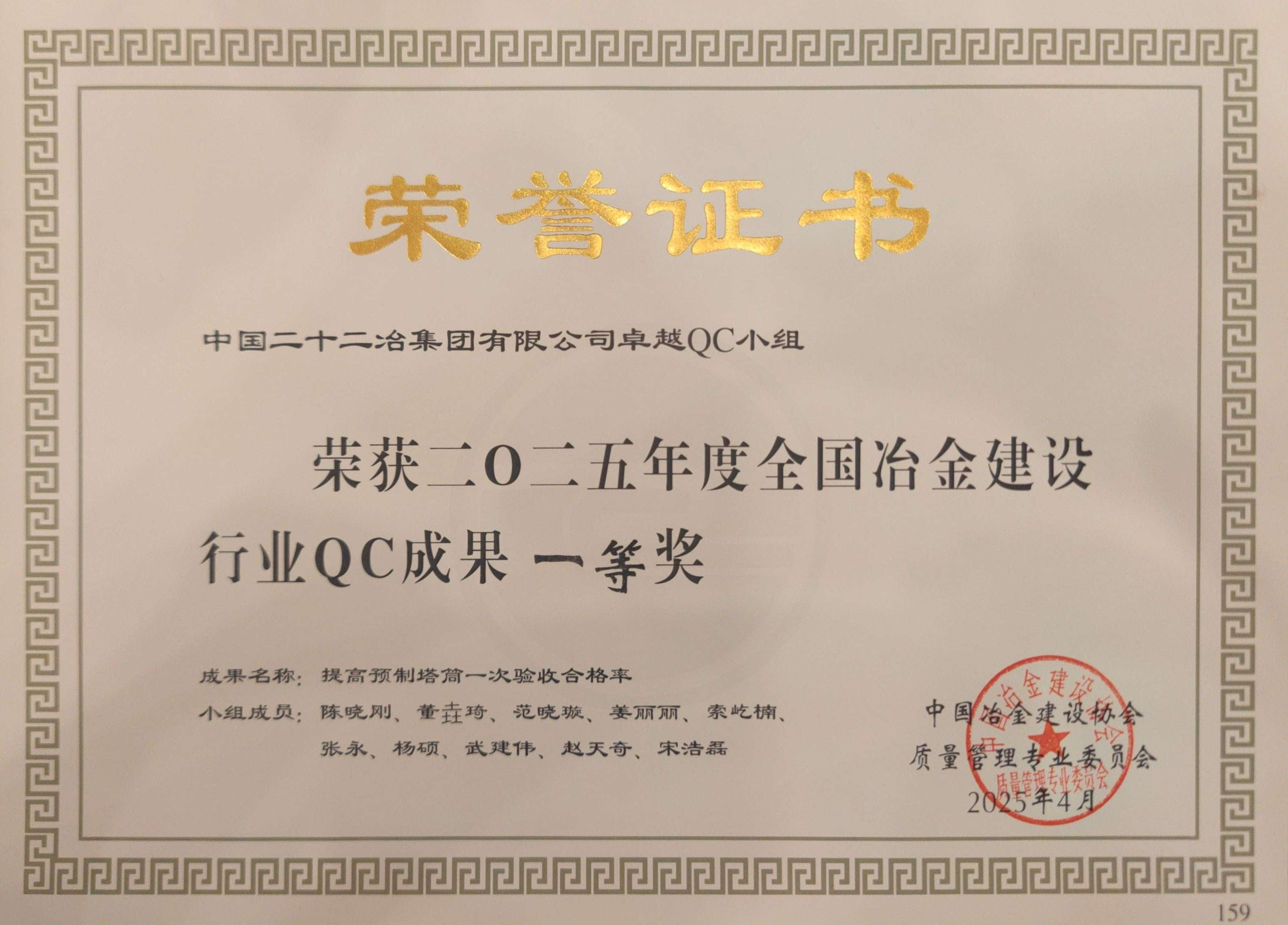 近日,中國二十二冶裝配式分公司多個質量管理小組先后參加由中國冶金建設協會、河北省建筑業協會分別舉辦的質量管理小組競賽活動,共計斬獲5項省部級QC獎項。其中“提高預制塔筒一次驗收合格率”成果被中國冶金建設協會推薦參加中施企協質量管理小組活動競賽;“提高被動式防水施工一次合格率”被河北省建筑業協會推薦參加中施企協質量管理小組活動競賽;“提高混凝土道路一次施工合格率”“研發新型裝配式剪力墻連接新技術”“提高預制構件收面一次驗收合格率”被河北省建筑協會推薦參加中國建設業協會質量管理小組活動競賽。