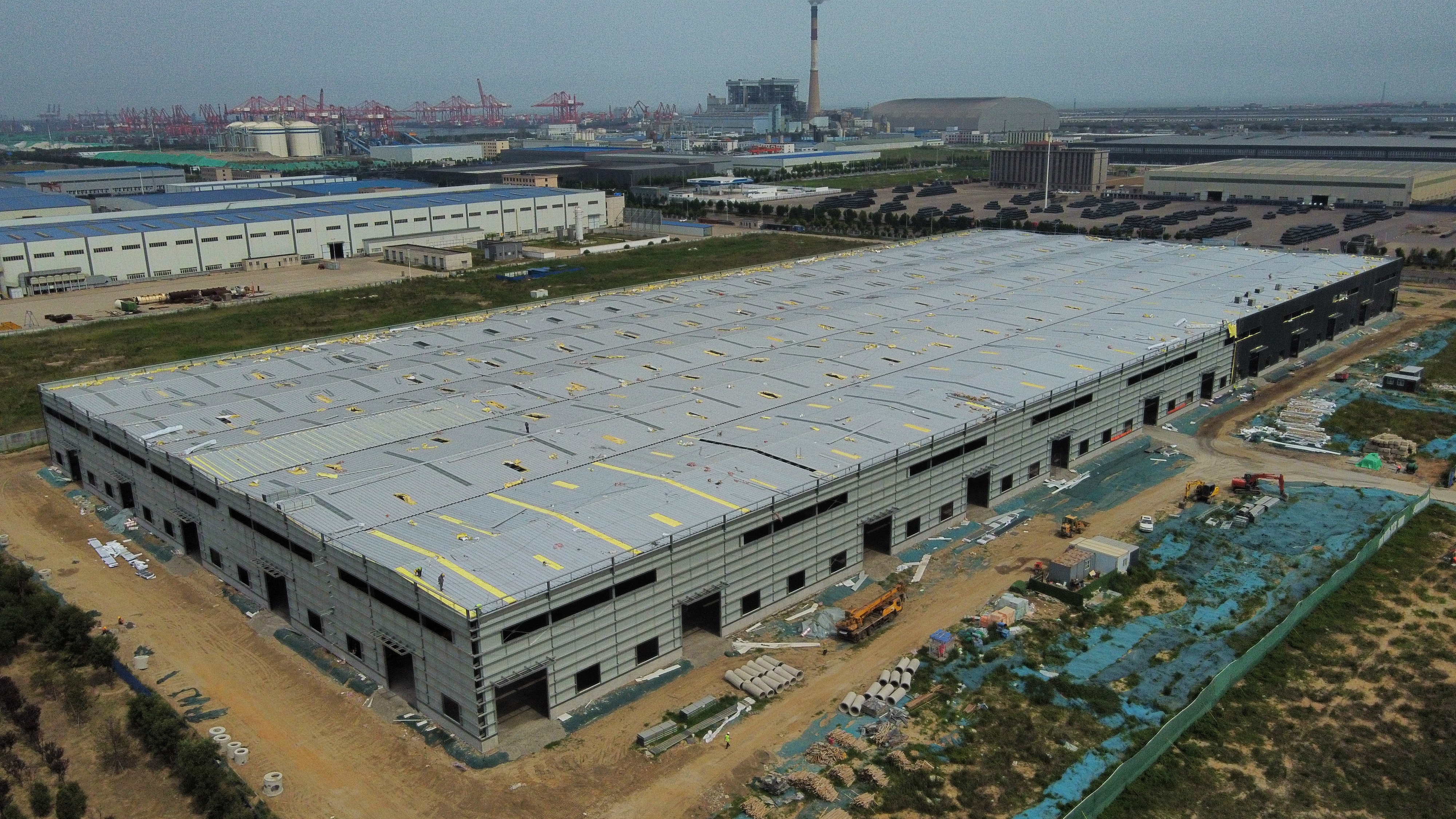 50萬噸鐵塔智能制造項目以工區生產為主線,結合項目現場工期緊張的實際情況,充分融合工作計劃、資源配置計劃,統籌梳理工序與工作流程,形成了全周期鏈條閉環管理的銷項計劃。樹立“上下一盤棋”理念,各分項工程提前介入,合理有序穿插施工,緊緊圍繞施工階段性節點和項目重難點,設立黨員示范崗5個、黨員責任區3個、青年突擊隊1支,黨員安全生產服務隊1支,劃分責任區,將工作任務細化分解,建立清單臺賬,實現職責到崗、責任到人,切實做到解決問題在一線,落實措施在一線。截至目前,圍護墻面外板全部完成,廠房1地面2-6軸混渣平整、碾壓完成。