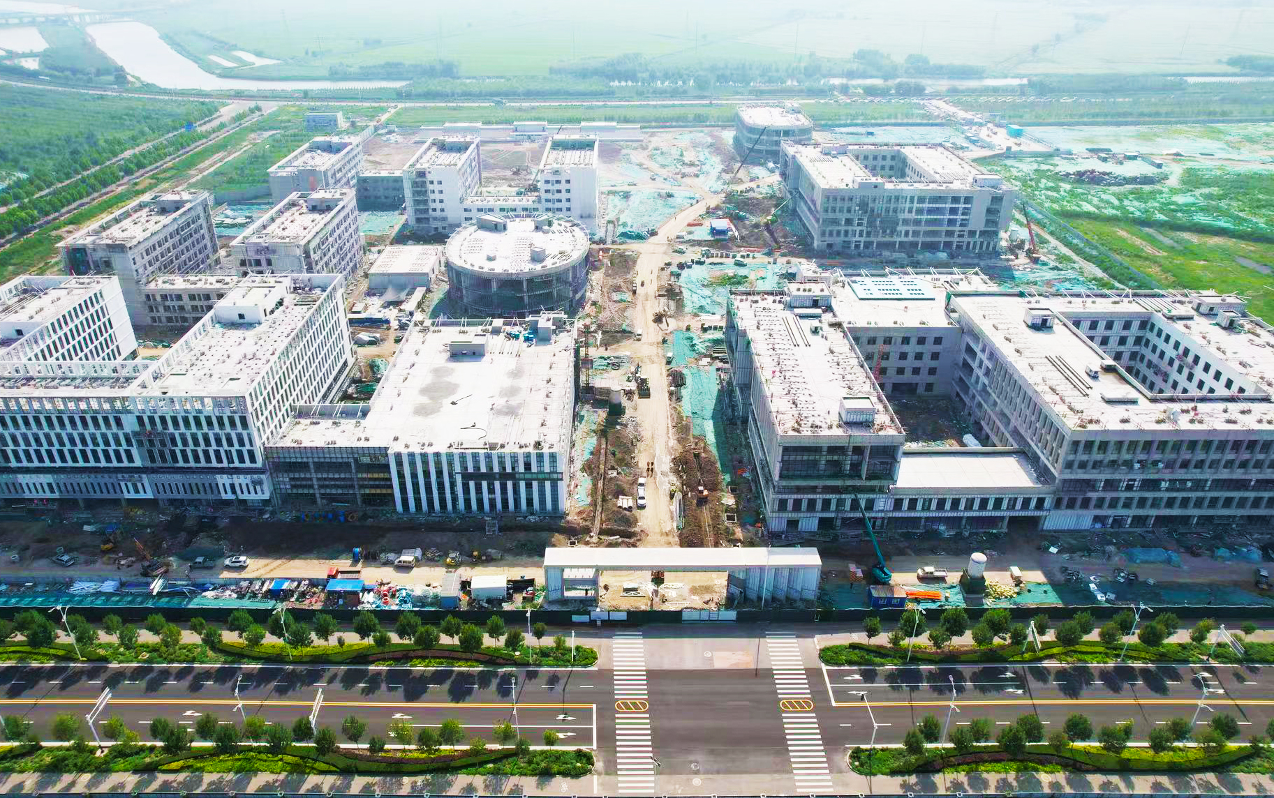 海港職業技術學院項目當前正處于緊鑼密鼓的施工沖刺階段,項目部人員上下齊心,戰高溫、搶工期。隨著雨季的到來,項目部充分考慮雨季對施工的影響,提前制定雨季施工方案,合理安排施工工序,確保施工質量和工期節點不延誤。同時,項目部通過發放高溫防暑應急藥品,避開高溫時段生產作業,合理安排作息時間,提醒職工注意防暑等措施,守護一線作業人員健康安全,確保項目按時、保質、有序推進。截至目前,1號教學樓外裝35%,內裝60%;2號教學樓外裝35%,內裝60%;1號宿舍樓二次結構80%,內裝20%;2號宿舍樓外裝60%,內裝70%。食堂外裝30%,國際交流中心外裝60%,內裝50%,大學生活動中心外裝55%,內裝60%。